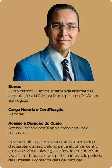 Capacitação específica para servidores efetivos e comissionados da estrutura do Poder Legislativo Municipal Legislativo que atuam na área de contratações e processos licitatórios em geral, e que são responsáveis por: